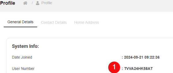 – To retrieve the User Number / Account Number