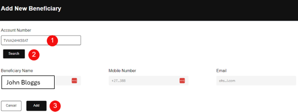 – Click on the “Add” button if you are satisfied that the Beneficiary details are correct – see number 3