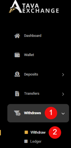 – Click on the “Withdraw” button on the menu bar – see number 1.