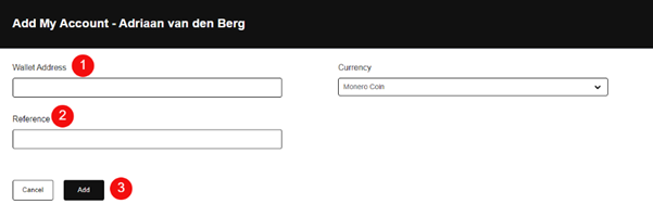 – Enter your XRM Wallet address – see number 1.