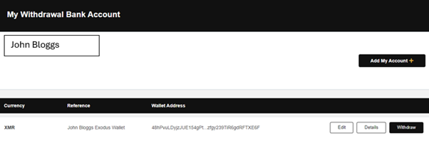 – Your XRM Wallet details will be displayed