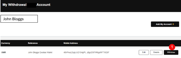 – Click on the “Withdraw” button on the menu bar – see number 1.