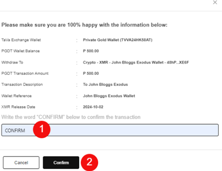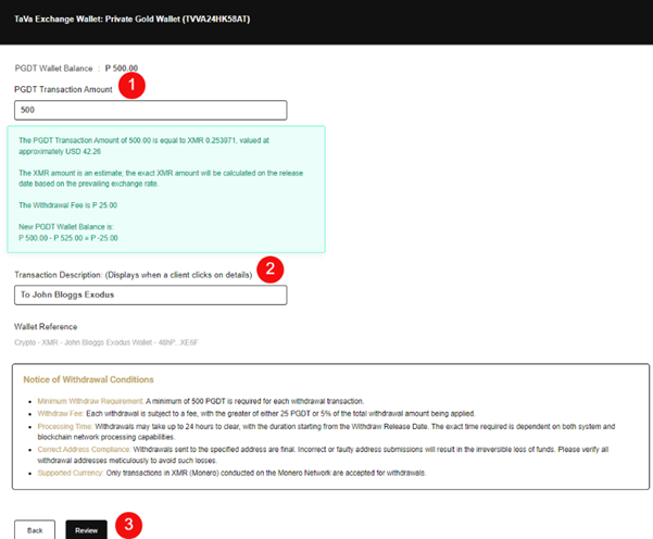 – Enter the amount of PGDT tokens that you want to withdraw – see number 1.